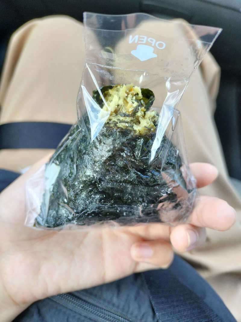 お昼ご飯は道の駅の裏側にあるおにぎり屋さんで高菜山わさびおにぎりを購入。