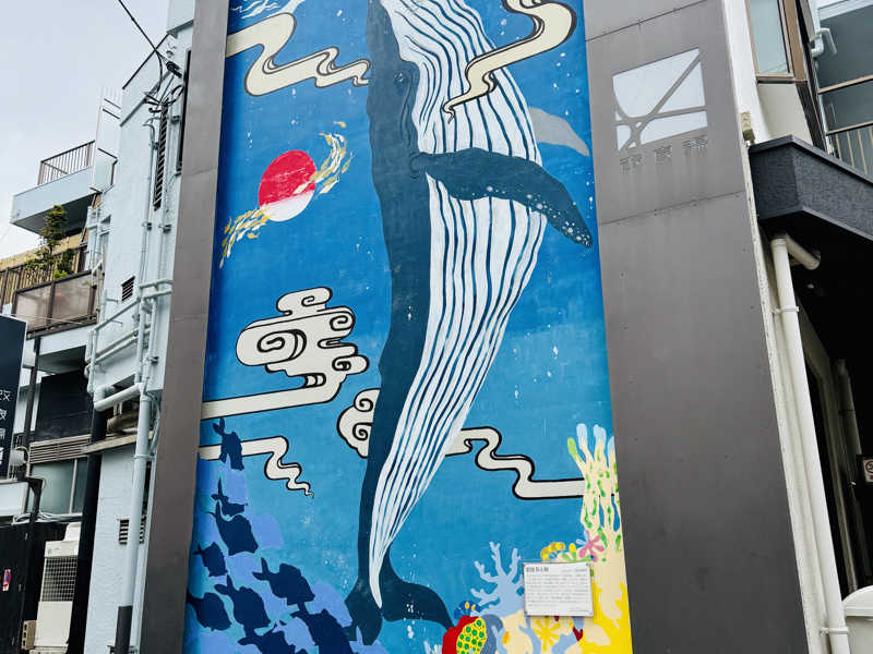 大通りから路地に入ると大きなクジラが!🐳