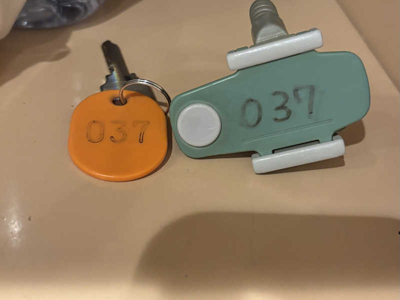 サウナ920円。受付でサウナ室に入るための鍵とバスタオル、バッグを受け取り、下駄箱の鍵を預けます。
