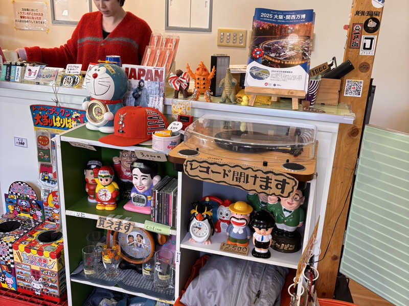 最近リニューアルしたばっかりだったらしいので中はかなり綺麗でした。グッズがあったりお店の人の趣味のレコードがあったりしてレトロ感満載でした。