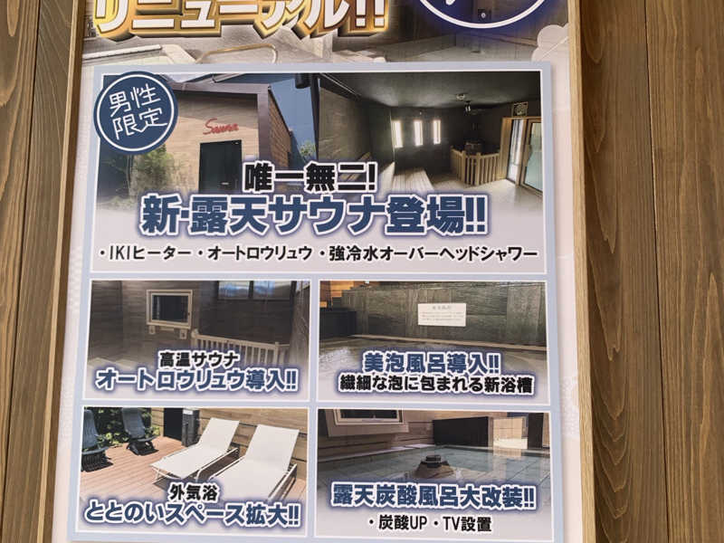 中は最近リニューアルされたという事でサウナだけめっちゃ綺麗。水風呂なんか3種類もあって感激。普通、シングル、温泉の水風呂とどれも気持ちいい。