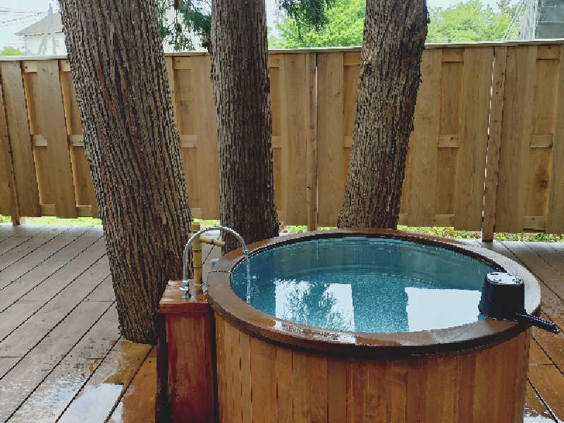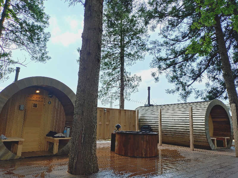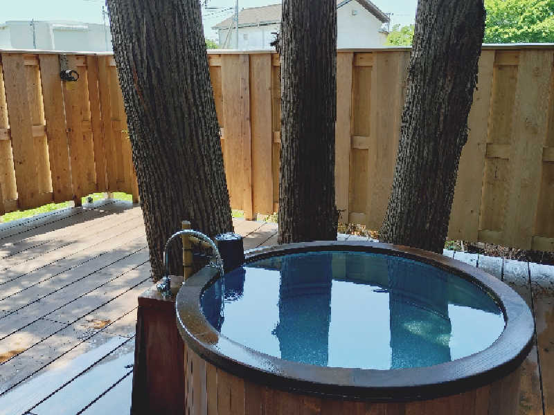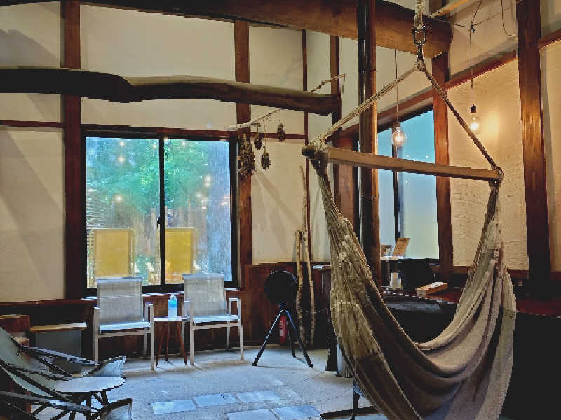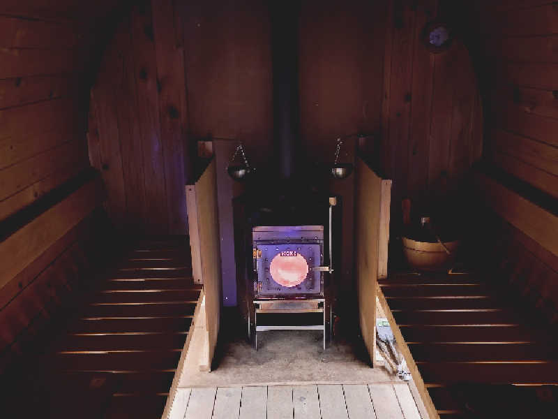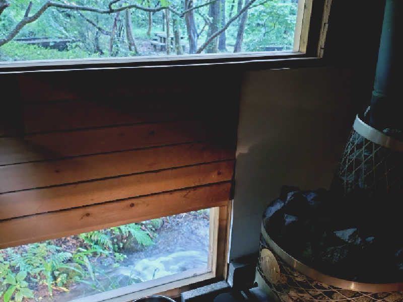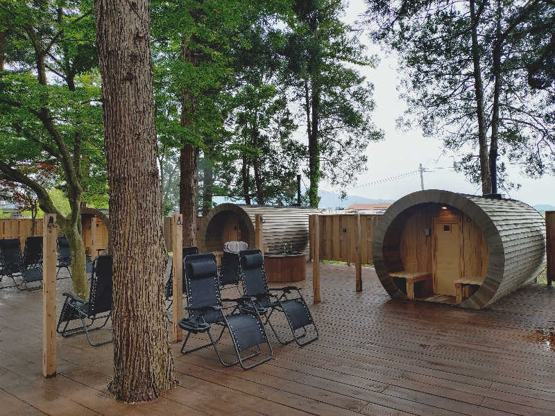 サ室は80℃ないぐらいで、ゆっくりじんわり汗が出る感じ。 水風呂は無いから水シャワー🚿 外気浴スペースもないから露天風呂のフチで座って休憩。チェアー置くスペースはあるからあるとサウナーはうれしい! あと、水分補給もお風呂場から出ないと無いのはちょっと不便でした。 温泉は気持ち良かったです♨