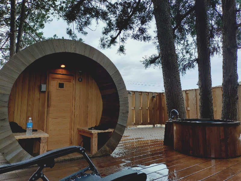 10分×4 水風呂1〜2分 内気欲8〜10分 ロウリュしてアチアチ🔥 しっかり汗かいて、水風呂でスッキリ✨ 休憩でウトウト… 天気も良くて最高☀️