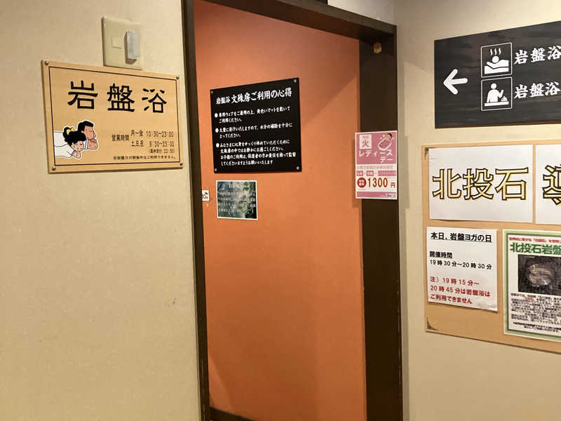一旦、脱衣所から出て通路突き当たりの岩盤浴受付で使用することを申告。