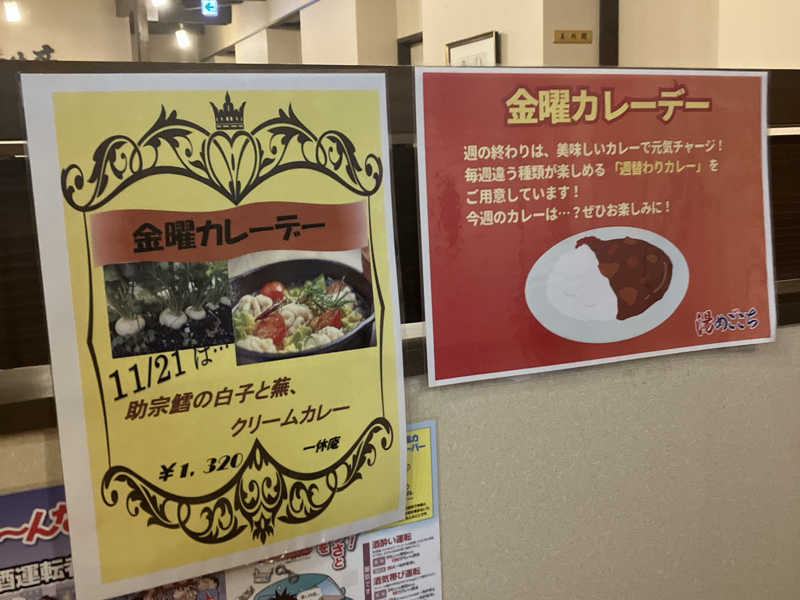 スタンプも受付でしっかりゲットし、食堂でいつか食べたい金曜カレーを確認して、浴場へ。