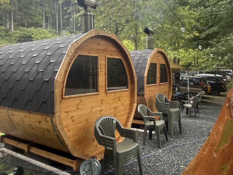 テントサウナ2台、バレルサウナ2台、トラックサウナ1台