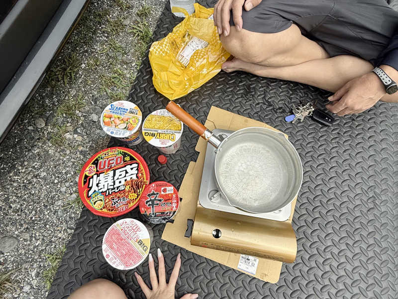今回は昼飯にコンロとカップラーメンを持ち込み