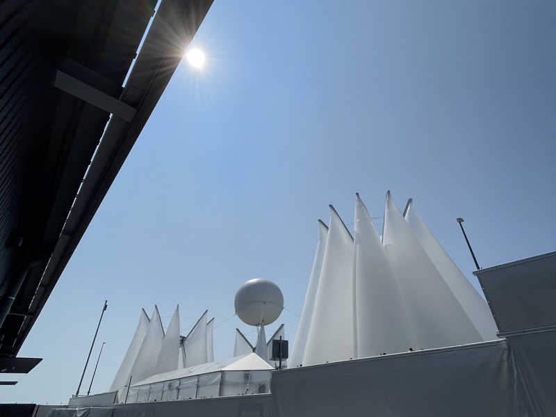 私たちしか入れない外気浴エリアからはもちろん他の万博客が見えることなく、海が見渡せて風も気持ちよくて最高!