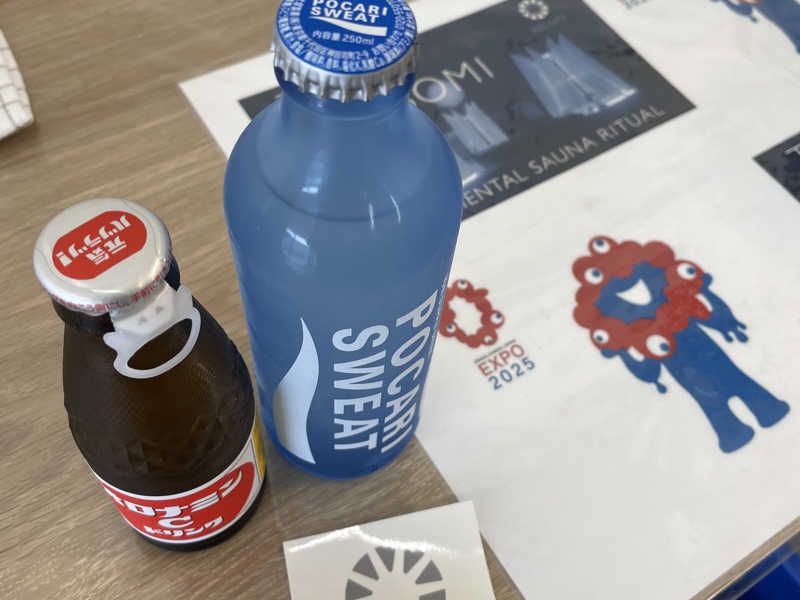 全員にフェイスタオル(サウナに持ち込みok.これで汗や水分を拭く用)と、バスタオル、大きめのイオンウォーターが入ったメッシュバックをわたされる✨