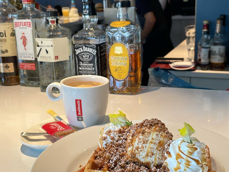 10時ぴたり入場からの→クーラーしっかりベルギーレストランにて狙ってたブリュッセルワッフルで朝から至福甘やかしタイム🤤