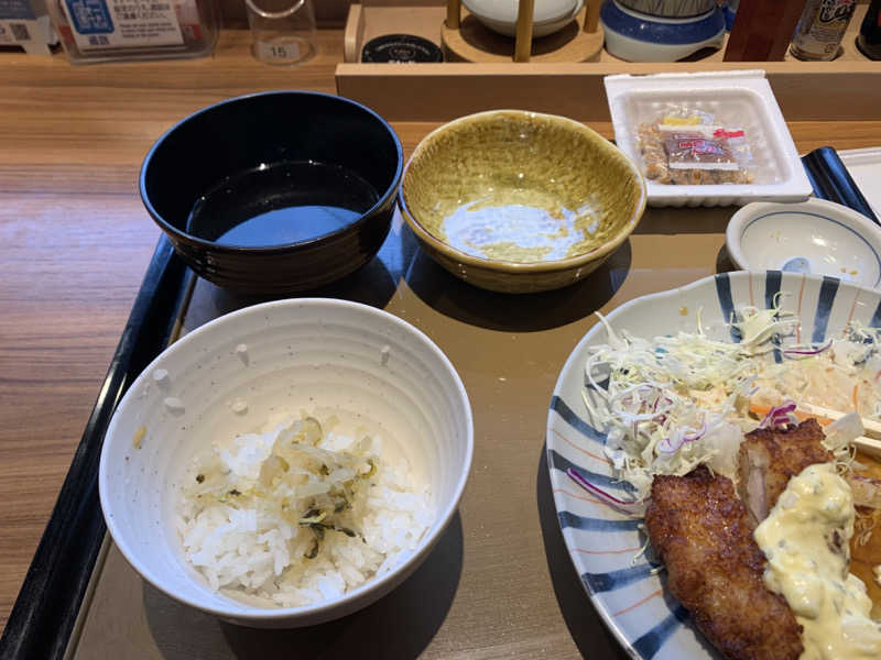 看板メニューのチキン南蛮、かしわ・衣・甘酢・タルタルが四位一体の美味しさです。