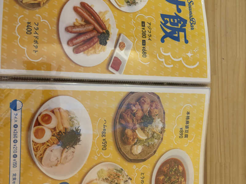 なんといっても楽しみにしていたのが食事。ココのアジフライが絶品とサウナ仲間から何度も聞いていたので楽しみにしていたのですが、なんと売り切れ。ガビーン。