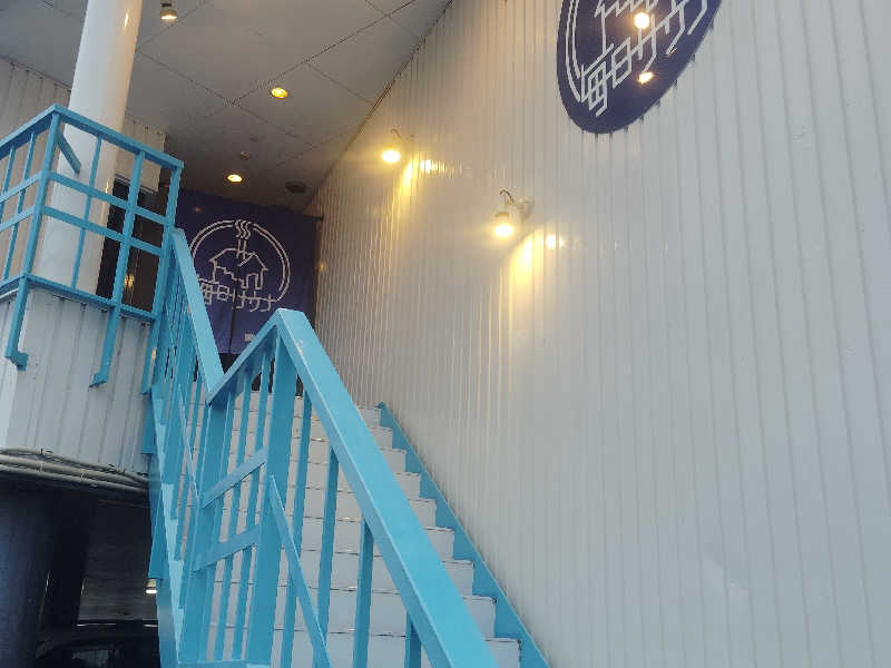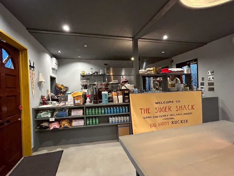 暖簾前の原っぱのところに車停めて暖簾くぐると、いつもとは違う雰囲気。更衣室が空くまでスクラブやバームの説明を受ける。