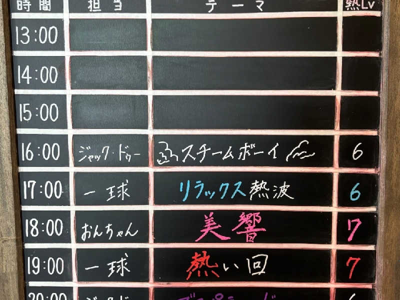 りさんが説明してくれて熱Lvは7と相当に熱いことが予想され敢えてサウナには入らず入念に水通し行いいざ18時回へ