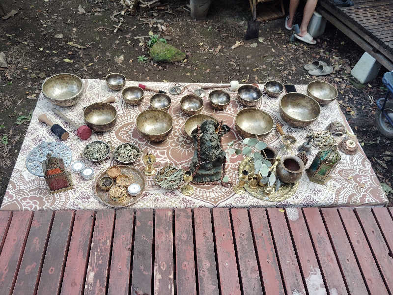 先程のセッションでウィスキング受けてなかった2人組に箕輪さんが説明しつつ施術。男性2人組も満足げ。つい数カ月前は自分も同じ立場だったんだよなー…