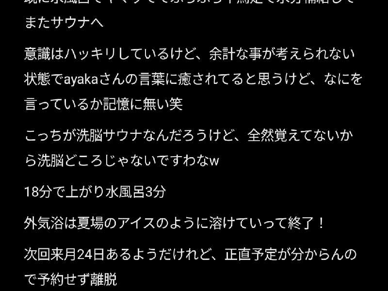 ayakaさんの優しく囁くように励まされる言葉に洗脳サウナってすれ違った人が言っていたけど強ち間違いじゃないですね笑