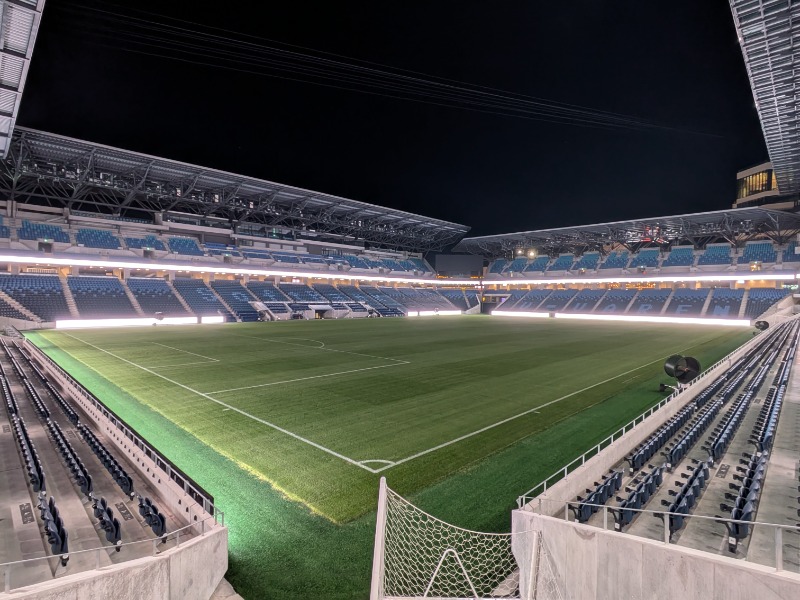 ここの魅力は併設のスタジアムが見れるプールサイドで整えること。平日はとても空いていていい感じだと思います。
