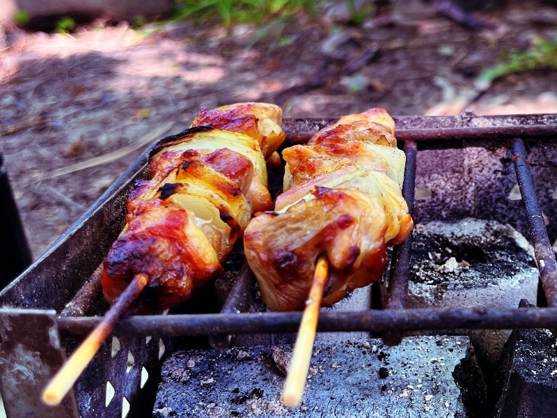 焼き鳥やで買った焼き鳥を炭火で温めて