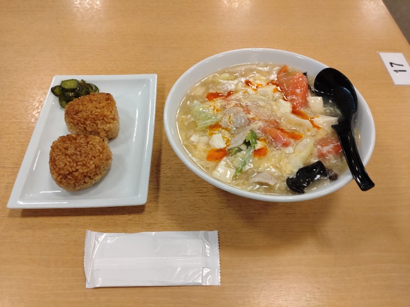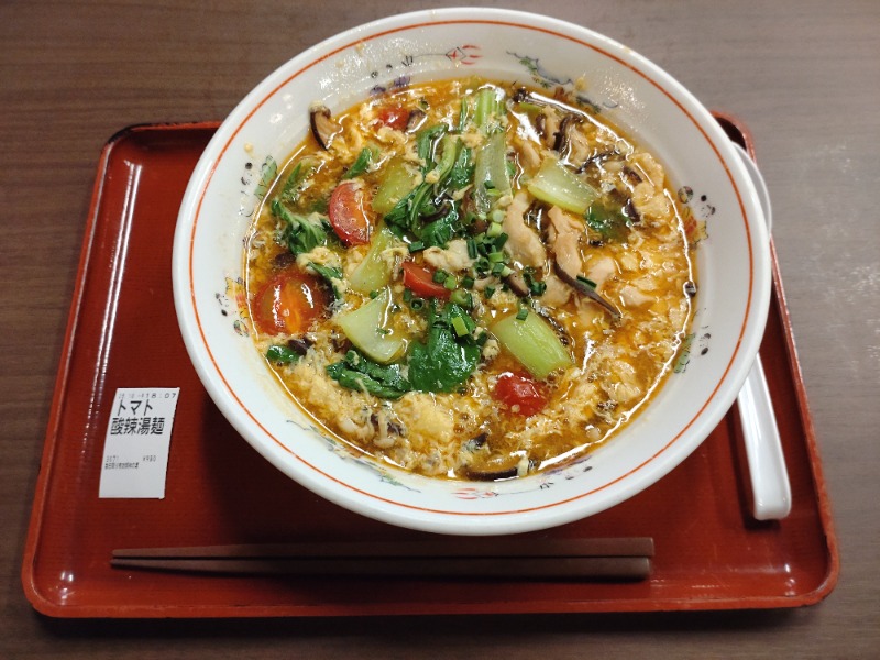 締めは、🦦ちゃんでしか温浴施設で食べた事無いジェネリックトマト酸辣湯麺を食べました🍜