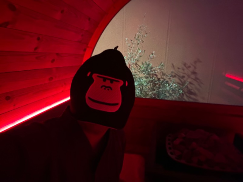 先日届いた、まもるさんになれるサウナハット(gorelax)初下ろし!デカくて良い!と思ったけど、ちょっとデカすぎ?笑