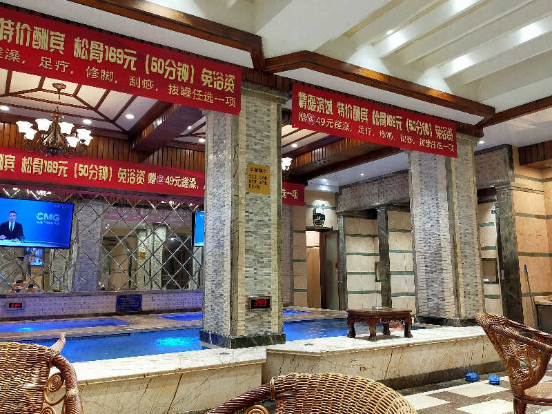 駅からバスで南へ30分、新都心(まだほぼゴーストタウン)にある日式スーパー銭湯。