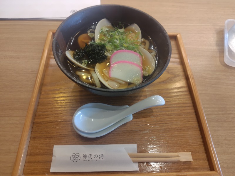 昼食には館内の食事処でハマグリうどんを選びました。磯の香りがふわりと広がり、出汁の旨味と相まってとても美味しく、温浴の合間の食事として最高の一杯でした。