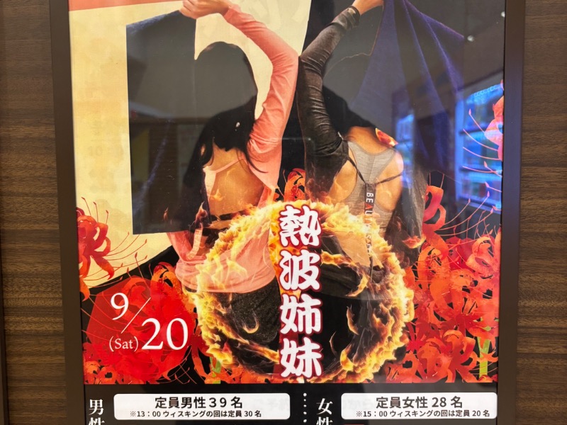 一言:仕事終わりに花しょうぶ♨️今日はお得な風呂の日で入館料200円引き👛その為お客様多め👥しかしながら3セットしっかり汗をかき仕事の疲れをしっかり落としました👍明日もイベントでお邪魔します😊