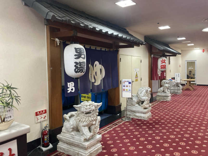大きくて広くて絨毯張りの館内、天井が高く広く種類豊富でプールまである浴室、日替わり漢方湯と露天の寝ころび別府の湯が良かった。サ室は広くレトロなカラカラ系で結構熱く感じた。そして馬?の像から水がジャバジャバ出ている広めの水風呂はゆっくりと入っていられる。そして露天でテレビを見ながらの外気浴、プールサイドの大窓からの隙間風を浴びながらの内気浴、どちらも良い。