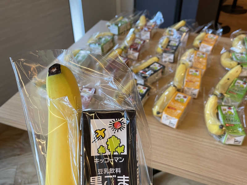 朝風呂プレゼントキャンペーンでバナナと豆乳を頂きました🙇♀️