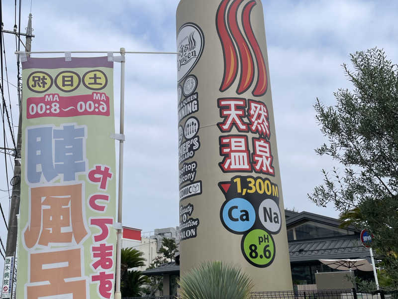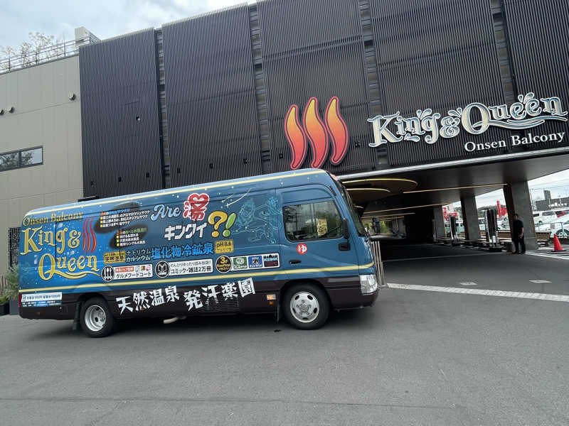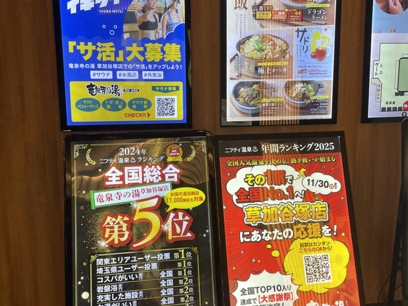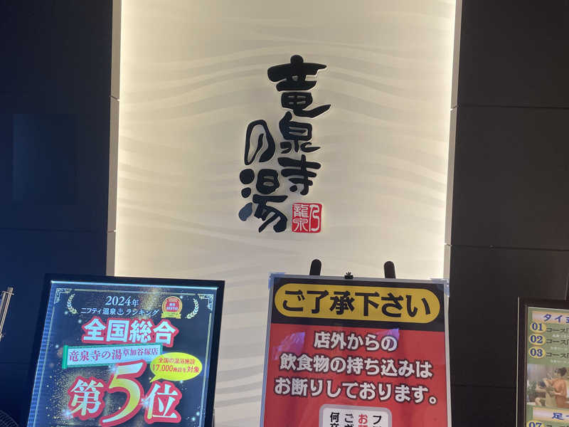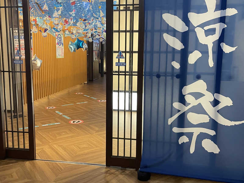 暑い中やって来たお友達を拾って、あれこれ話しながらワクワクして極楽湯ロイヤル川口に到着したら、普通、コラボしてると幟がなびいていているのに無いぞ?