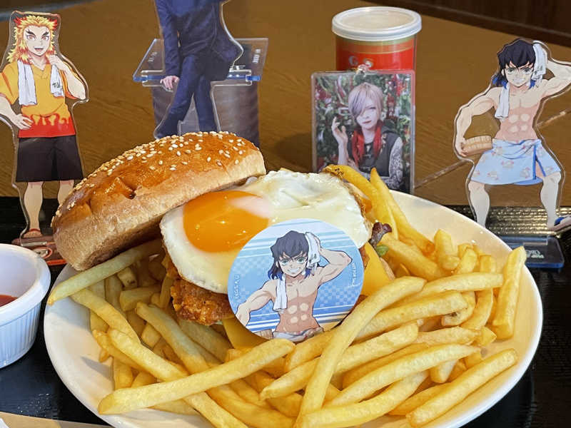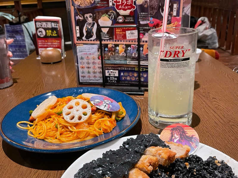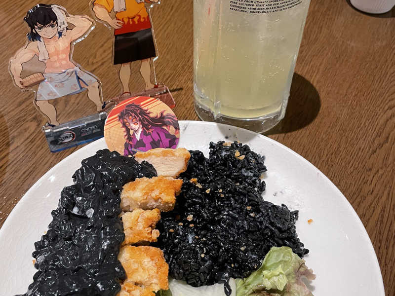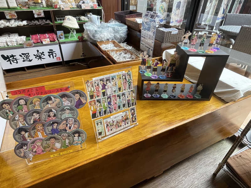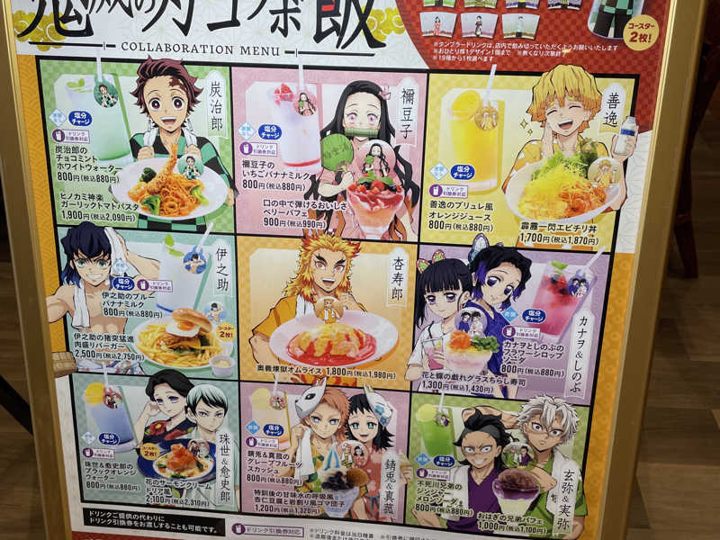お友達とサ飯に鬼コラボメニュー食べて、隣の席の方が伊之助のコースターを交換してくれました😆