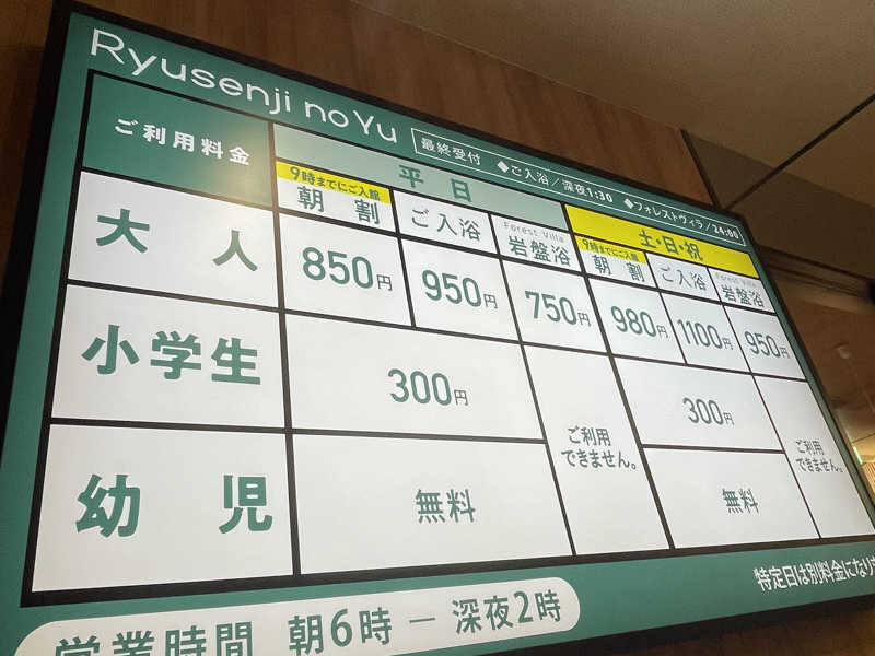 お盆期間は殆どが特別料金で更に混んでいると言う状態になるので、割安になる8時まで入館の朝風呂1000円で利用‼️