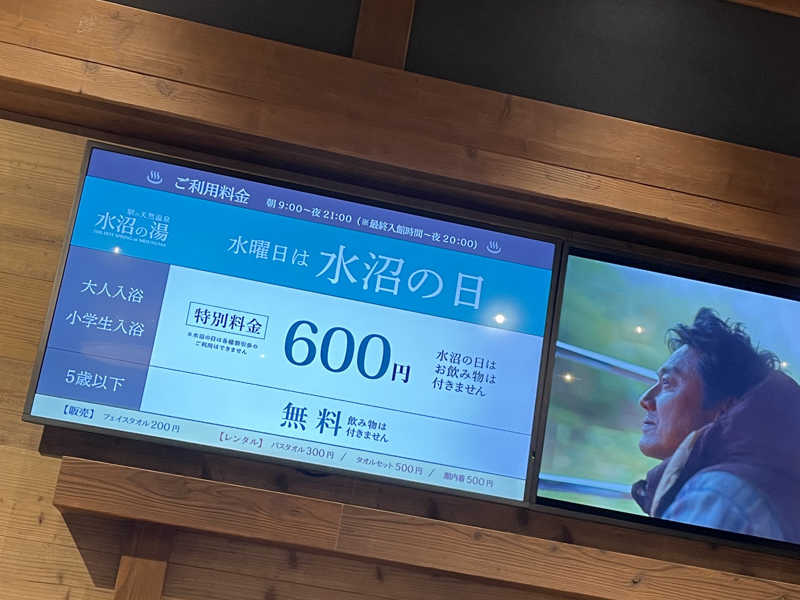 水曜日は『水沼の日』で半額の600円入浴出来ました。