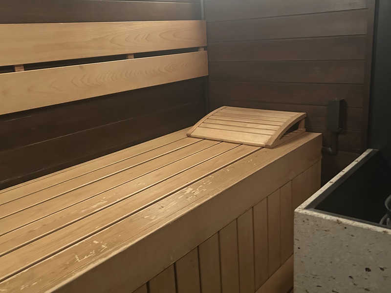 外で外気浴をして、ロウリュウができるサウナへ。生憎ロウリュウができる時間帯ではなかったですが、薄暗い雰囲気がよかったです。