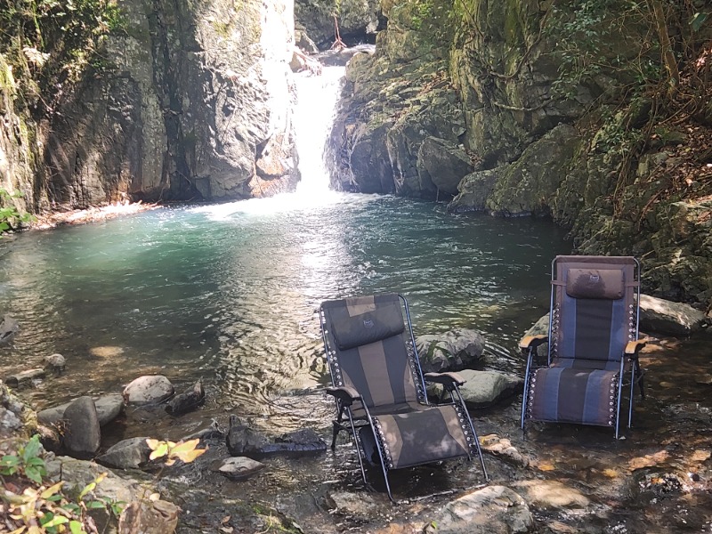 2セット目以降はいよいよ滝風呂へ。階段で川面まで降りていき、滝壺にダイブ!死ぬほど気持ちいい!そして川の中に設置しているインフィニティーチェアに包まれます。極上のひとときとしか言いようがありません。90分時間いっぱいまでで4セットかましますした。ご一緒した御姉様方はおそらくもっと入っていたかと笑。