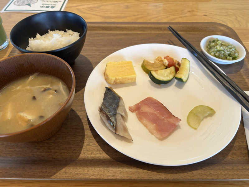 サウナのコンディションは穏やかで、居心地良し。セルフロウリュで熱さも十分。ただ、整い用?と思われるベンチの背中が鋭角で、どこで休憩するのか割と悩み。それでも、金色の田んぼに囲まれ、ナウシカぽいなーと考えながらのんびりサウナに入れる環境は唯一無二かと。明日は必ず朝ウナ決めます。