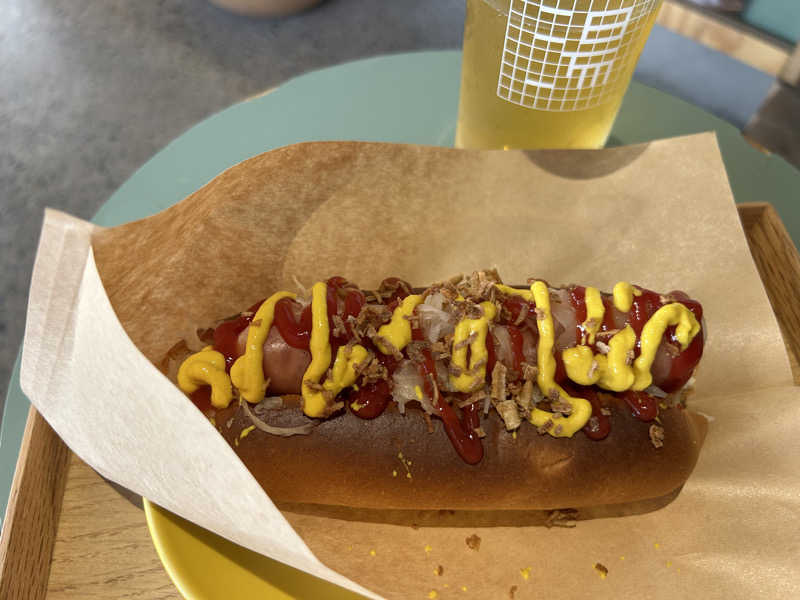 大満足のサウナの後はビールとホットドッグで仕上げ。仕上がりすぎて小田急線で寝ました。