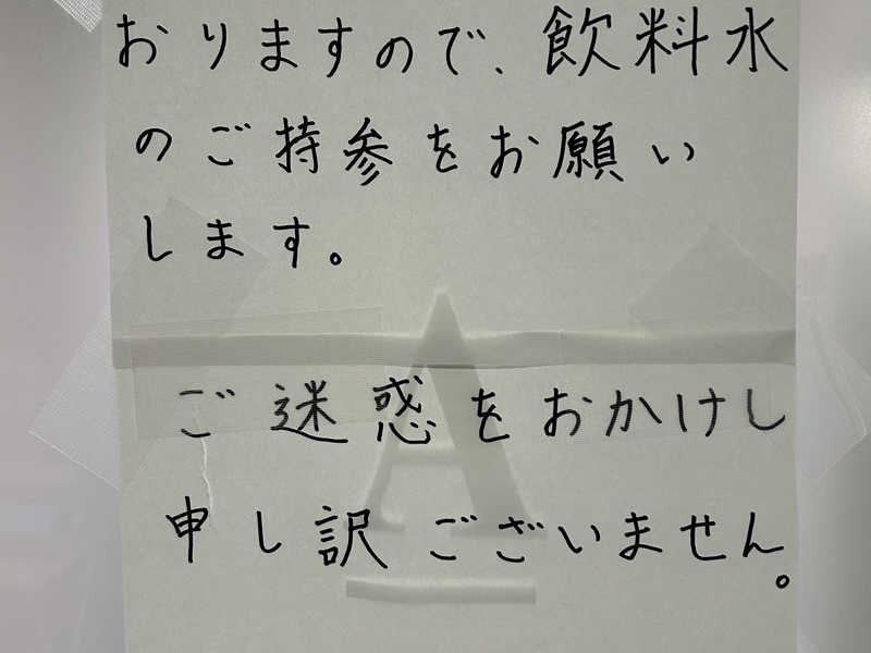 目当てだった外気浴もやっぱり最高。結局2セット終わるまで貸切で文句なしのサ活でした。ちなみに、ととのい室内に「宜しければ水道水を飲んでください」という貼り紙ありました。貼り紙の真横にはかけ水用の蛇口。かけ水用の水をどうぞってことなのかな…