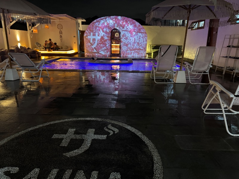 外気浴スペースには様々なタイプの椅子があるが、オススメはインフィニティチェアでバリ島の星を見ながらの休憩。