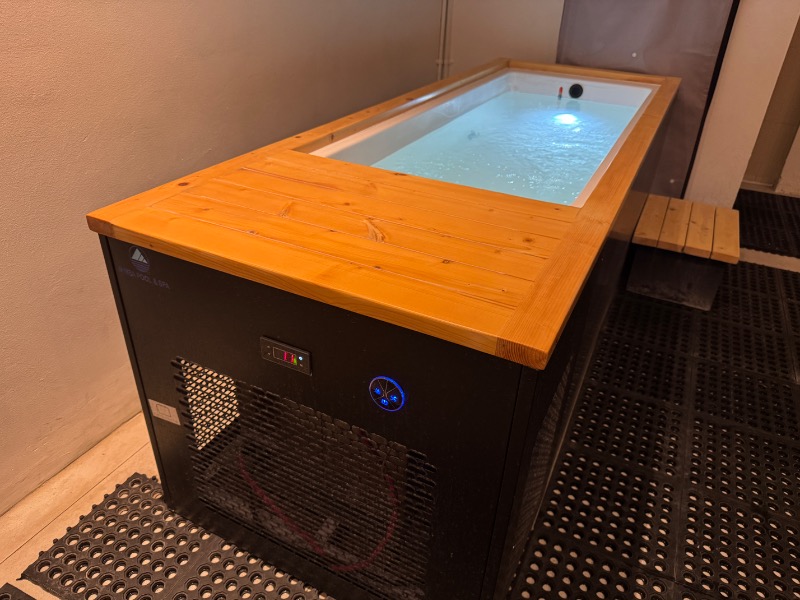 導線も良く、サウナ室横のシャワーで汗を流した後はキンキンに冷えた暴力的な温度差の水風呂へ。