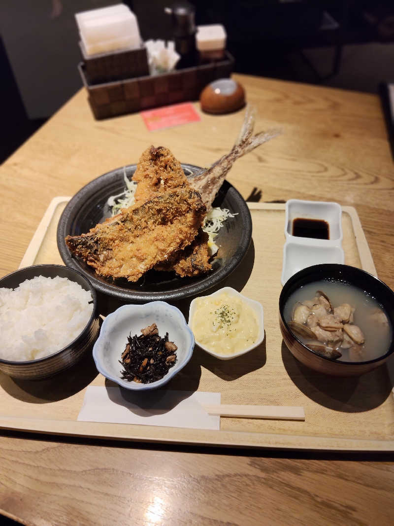 アジフライしみじみ旨いし、貝汁は身の数多すぎ濃厚過ぎてヤバい