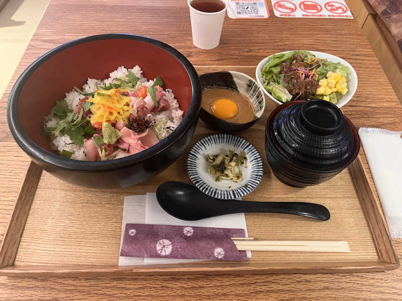 昼食(ぶつ切り胡麻ダレ海鮮丼(大)、セットサラダ)