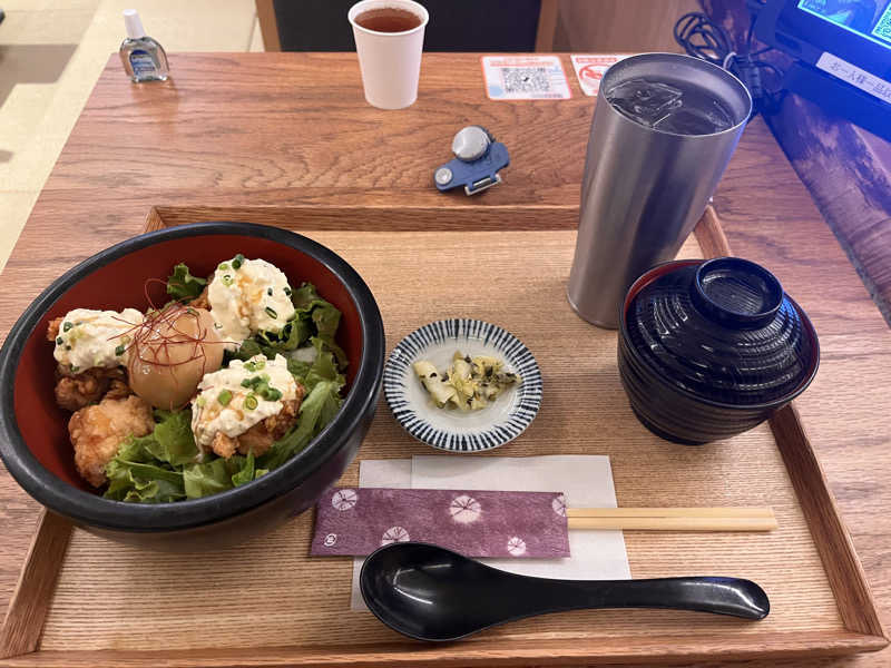 夜食(甲州信玄鶏 唐揚げタルタル丼(唐揚げ 3個)、自家製生姜ハイボール)