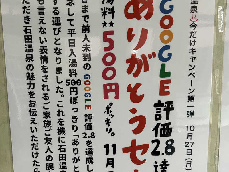 古戦場かおふろランドか迷った末、職場と逆方向のおふろランドへ。