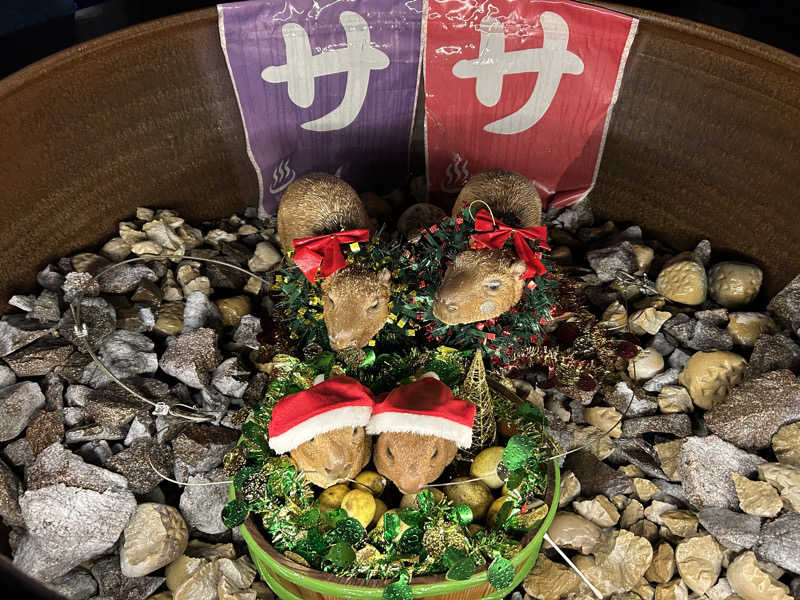 帰りにカピバラファミリーのクリスマスを発見😍
