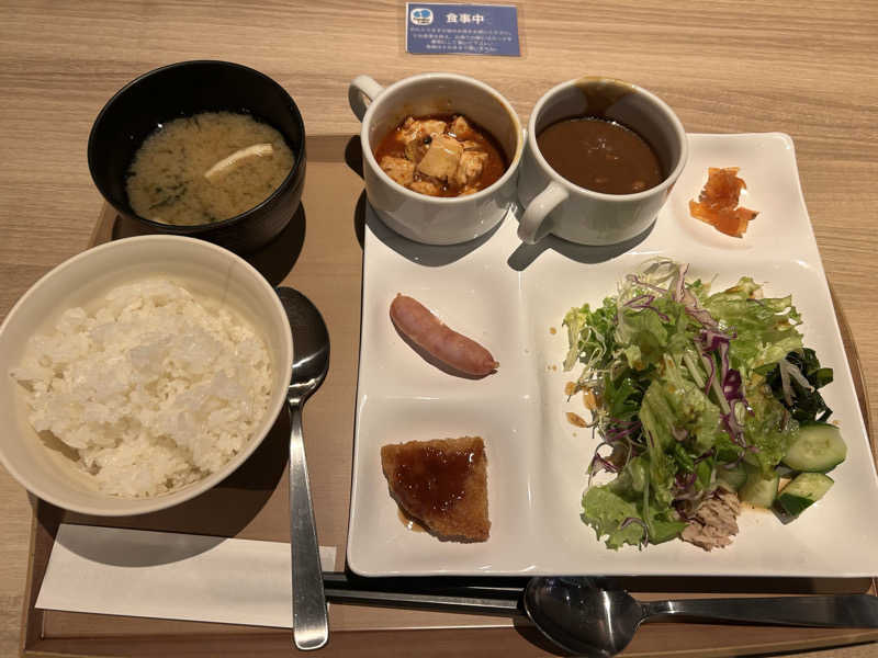 と宿泊プランに付いてた夕食チケット持って食堂に行ったら、夕食チケットのメニューからチゲ鍋が外れていた😂