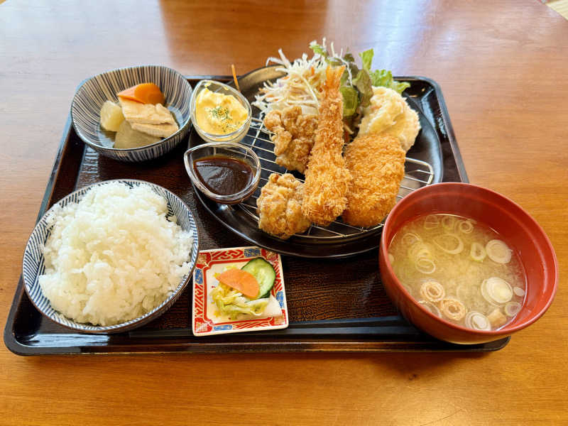 ガッツリイキタイ気分なので、ミックスフライ定食を注文🙋
