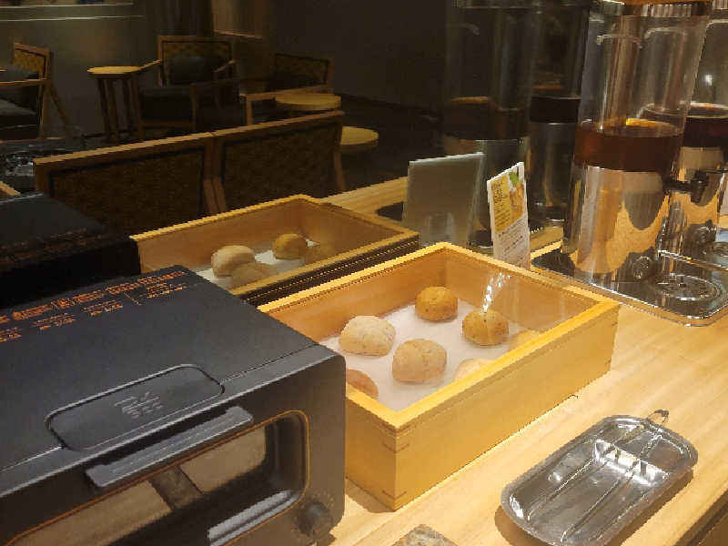 BALMUDAで温めたパン、デトックスウォーターや紅茶、熊本の天然水など楽しめる。
