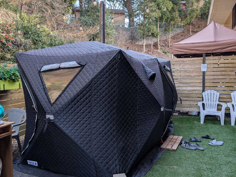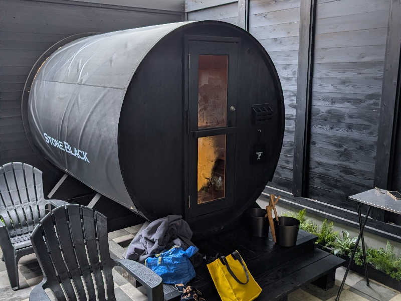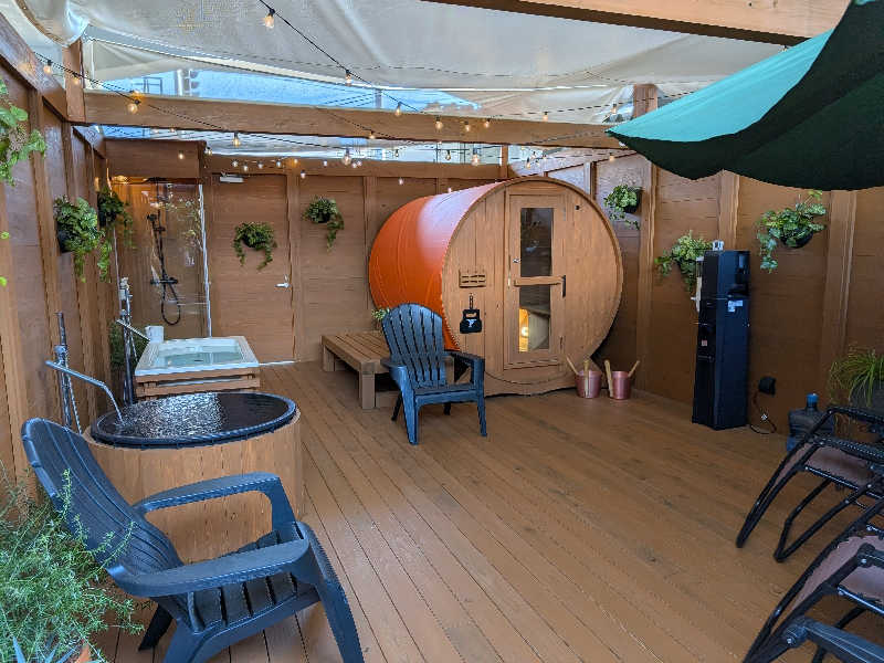 14:00のロウリュ前にお湯に浸かり少し前にサ室に…