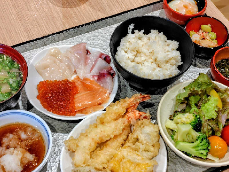 朝食のブリと天ぷらはズルい。米が進み過ぎる。